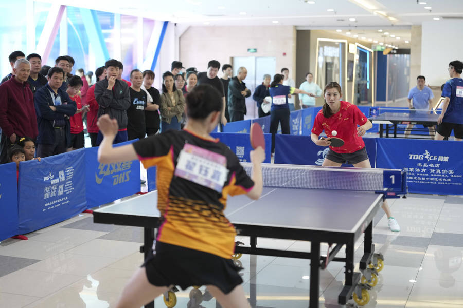 活动现场比想象中热闹。有人举着手机站在特制球台前,对着屏幕里的虚拟国手挥拍;有人围观抽奖区,盯着滚动的大屏幕盼着“71脱口秀门票”几个字出现。据主办方介绍,这是虹口区“体育+商圈”融合的新尝试,除了打球抽奖,现场还有体验球台、互动游戏,连路过的大爷都忍不住拿起球拍:“我年轻时候也是厂里的乒乓好手!”这种接地气的活动,让专业赛事不再遥不可及,商场里的烟火气和体育热情撞了个满怀。